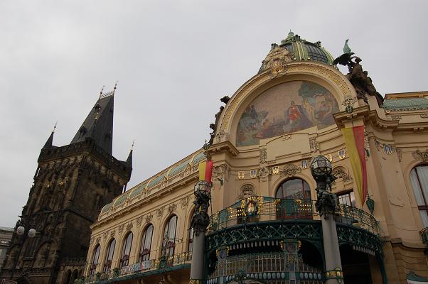 アールヌーボーの装飾で有名な市民会館と火薬塔