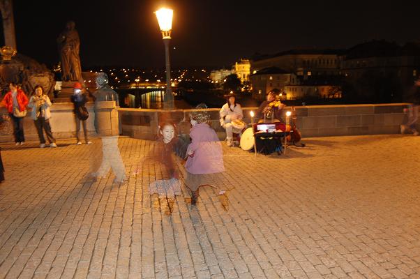 カレル橋の上で ストリートミュージシャンに合わせてダンス。