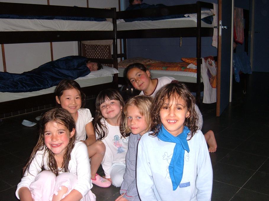 お友達とパジャマで 2段ベッドに寝袋で寝ます